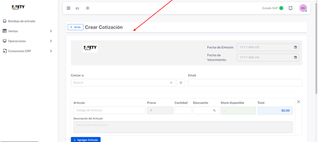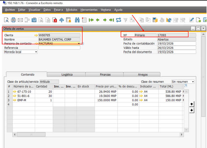 a. Una vez creada la cotización, esta se integra automáticamente en SAP como oferta de venta.