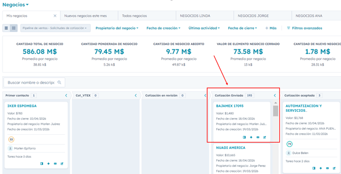 b. y se genera un negocio en HubSpot para dar seguimiento a la negociación con el cliente.