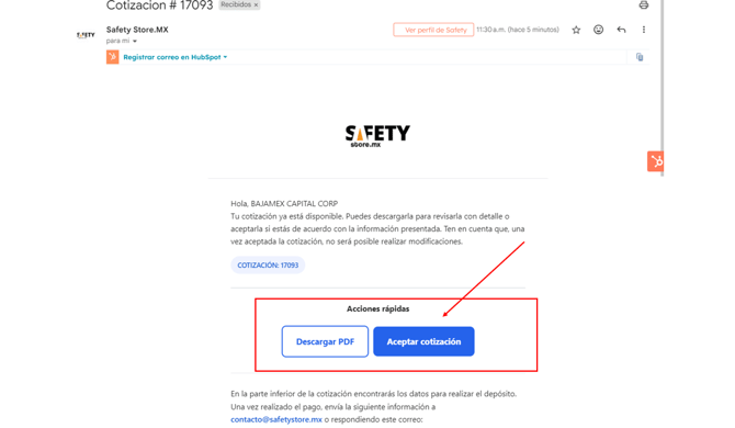 3. Una vez que la cotización es ganada, el cliente puede aceptarla desde el correo electrónico o el agente de ventas puede confirmarla desde el portal Tripulse